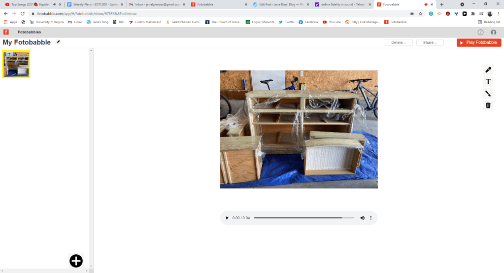 I am so excited to have discovered Fotobabble! And what a cute word! I am fairly familiar with Davinci Resolve and Audacity, which are open source tools that Katia gave as suggestions but I really wanted to delve into something I knew nothing about. I considered Puppet Pals and Little Bird Tales but these are both applications for iPads or iPhones. I own both these Apple products but I prefer to do my school work on my desktop computer (which is not an Apple desktop). So I tried Fotobabble and this is simply awesome! I LOVE it! You have to try it! I love that it is sooooooo user friendly. I did not need to google or YouTube anything in order to learn how to use it. It is extremely straight forward to use. It is a program that uses your recorded voice overlapping pictures of your choosing.