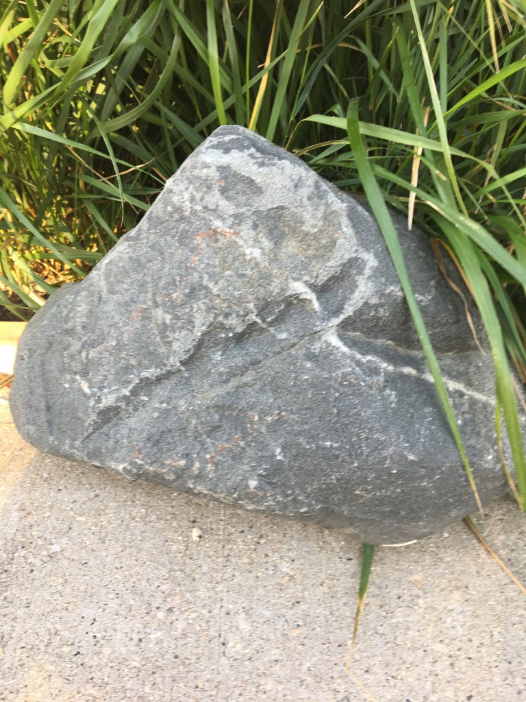 Monday, September 16, 2019 I walked my regular route to my bus stop. Two years ago this house re landscaped their backyard and grew these lovely swaying bushes on the sidewalk side of their new fence. Today I walked really close to the greenery to feel its softness before the weather quickly changes and I’ll be forced to wear gloves. I almost tripped over the boulder! I have walked this spot many times and I have never noticed this boulder! I am not exactly sure why it is there or if it is even meant to be there but based on its size (see photo below), I am startled that I never noticed it before. The boulder is somewhat hidden (can you find it in the picture above?!) but I actually think it is rather pretty…. I think they should put it beside the greenery rather than under it so its uniqueness can be more easily appreciated.